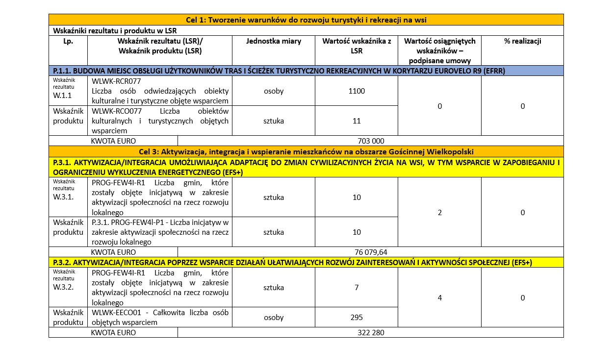 LGD Gościnna Wielkopolska w ramach Strategii rozwoju lokalnego kierowanego przez społeczność (LSR) realizuje 3 cele główne Lokalnej Strategii Rozwoju (LSR)