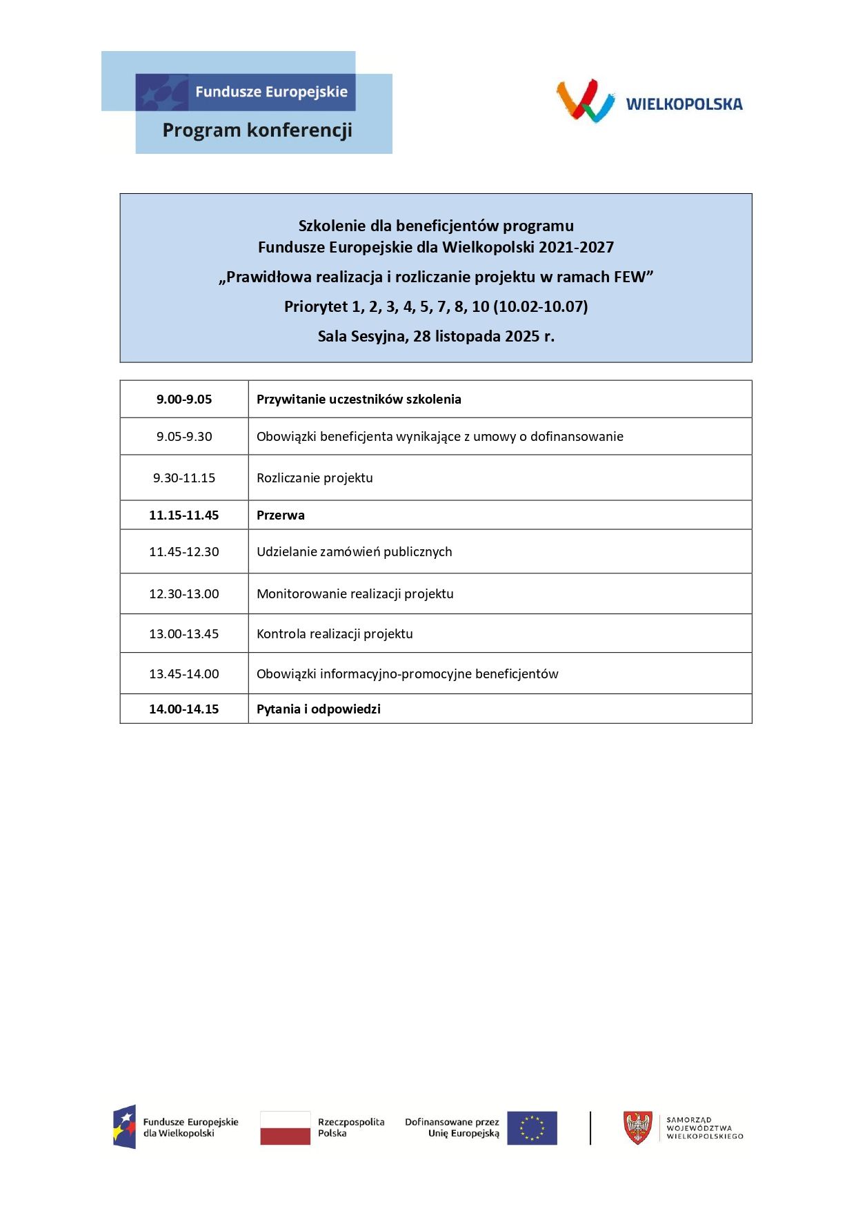Informujemy, że beneficjenci realizujący projekty dofinansowane z Europejskiego Funduszu Rozwoju Regionalnego (EFRR) w ramach naboru LGD Gościnna Wielkopolska na przedsięwzięcie P.1.1. Budowa miejsc obsługi użytkowników tras i ścieżek turystyczno-rekreacyjnych w korytarzu EUROVELO R9 mogą wziąć udział w szkoleniu dotyczącym prawidłowej realizacji i rozliczenia projektu.